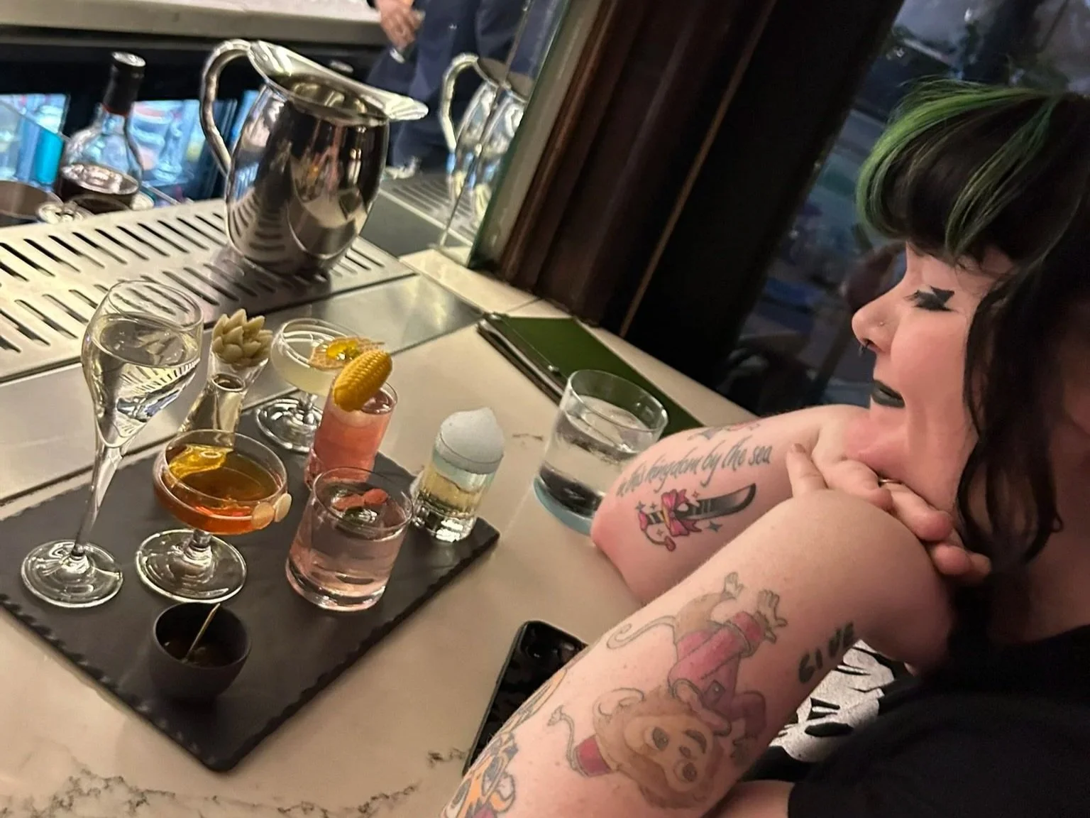 Rayo was also a top pick for me. The bartenders were friendly and knowledgable, shared a ton of detail on the spirits they used (so many locally produced! Mexican whiskey? And delicious?!), and made some great drinks. Decca got a ‘cocktail flight’ that… well, the picture will speak for itself.